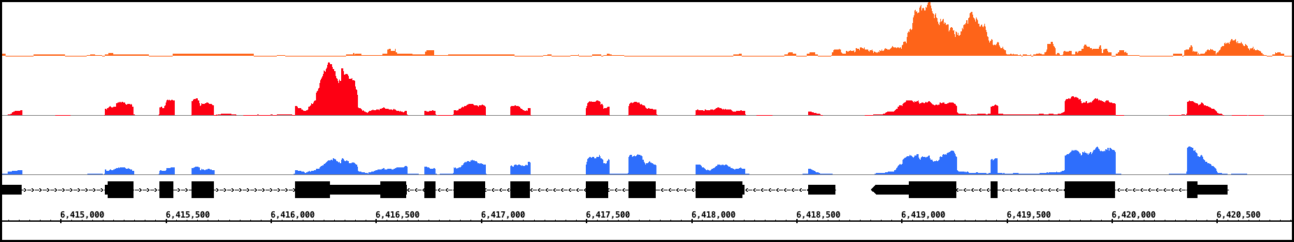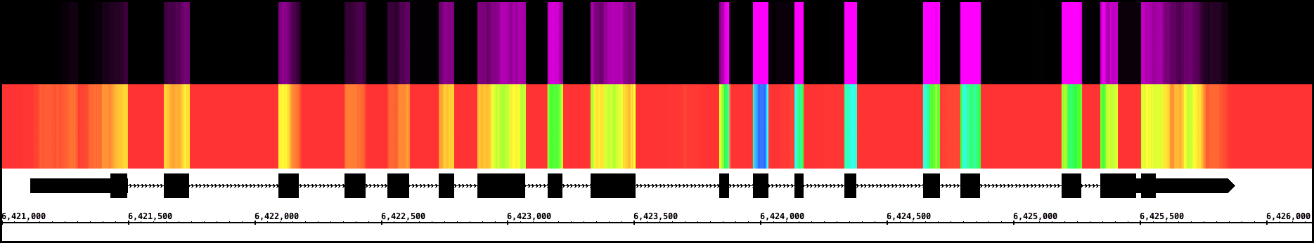 View data from aligned sequences, annotations, and more (BAM, BED, GFF3). Overlap multiple datasets and customize each track's color. Or make a heatmap of the data.