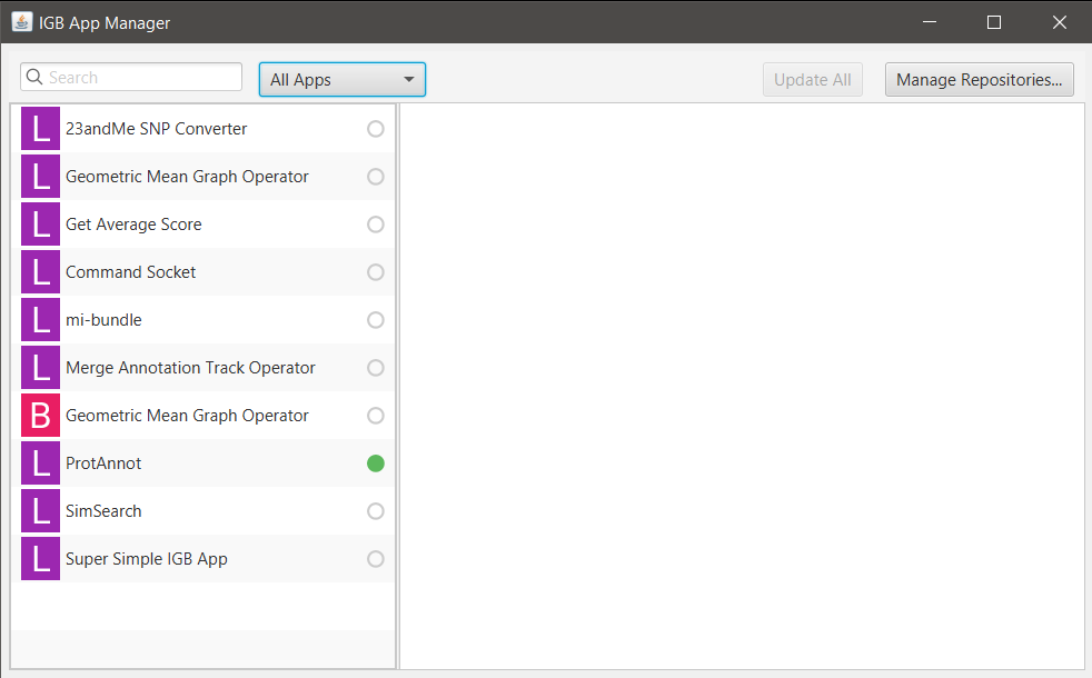 Select and install Plug-ins through the IGB App Manager to add additional functionality. You can also make your own plug-ins/apps and share them with the IGB community.